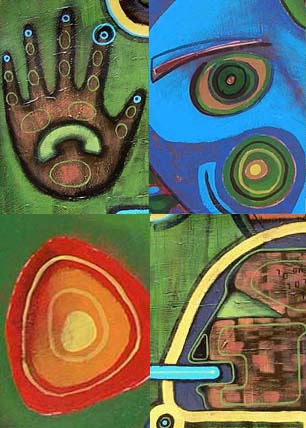 De schilderijen hebben vaak een grove ondergrond en veel reliëf.